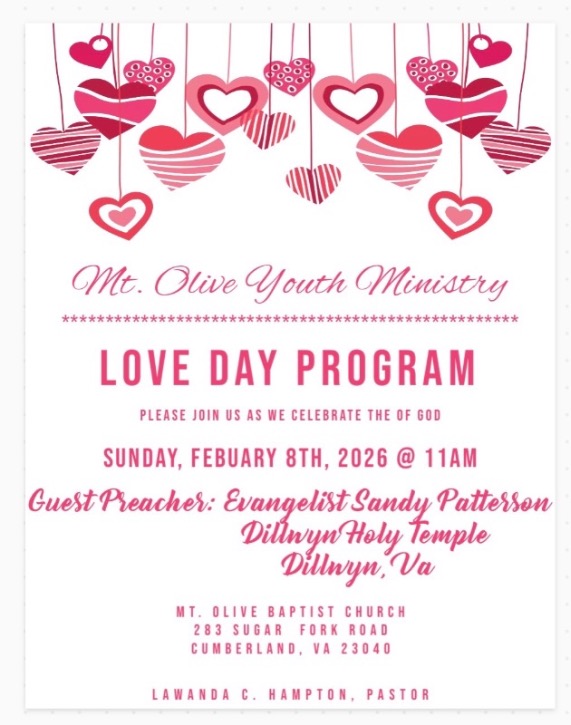 The Mt. Olive Youth Ministry warmly invites you to join us for our Love Day Program as we come together